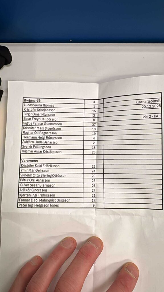 Skiptingar Þórs 61 mínúta Kristófer Máni Sigurðsson, út Atli Þór Sindrason, inn 63 mínúta Sverrir Páll Ingason, út Ýmir Már Geirsson, inn 72 mínúta Hermann Helgi Rúnarsson, út Birgir Ómar Hlynsson, út Fannar Daði Malmquist Gíslason, inn Kristófer Kató Friðriksson, inn 83 mínúta Ingimar Arnar Kristjánsson, út Ásbjörn Líndal Arnarsson, út Peter Ingi Helgason Jones, inn Vilhelm Ottó Biering Ottósson, inn