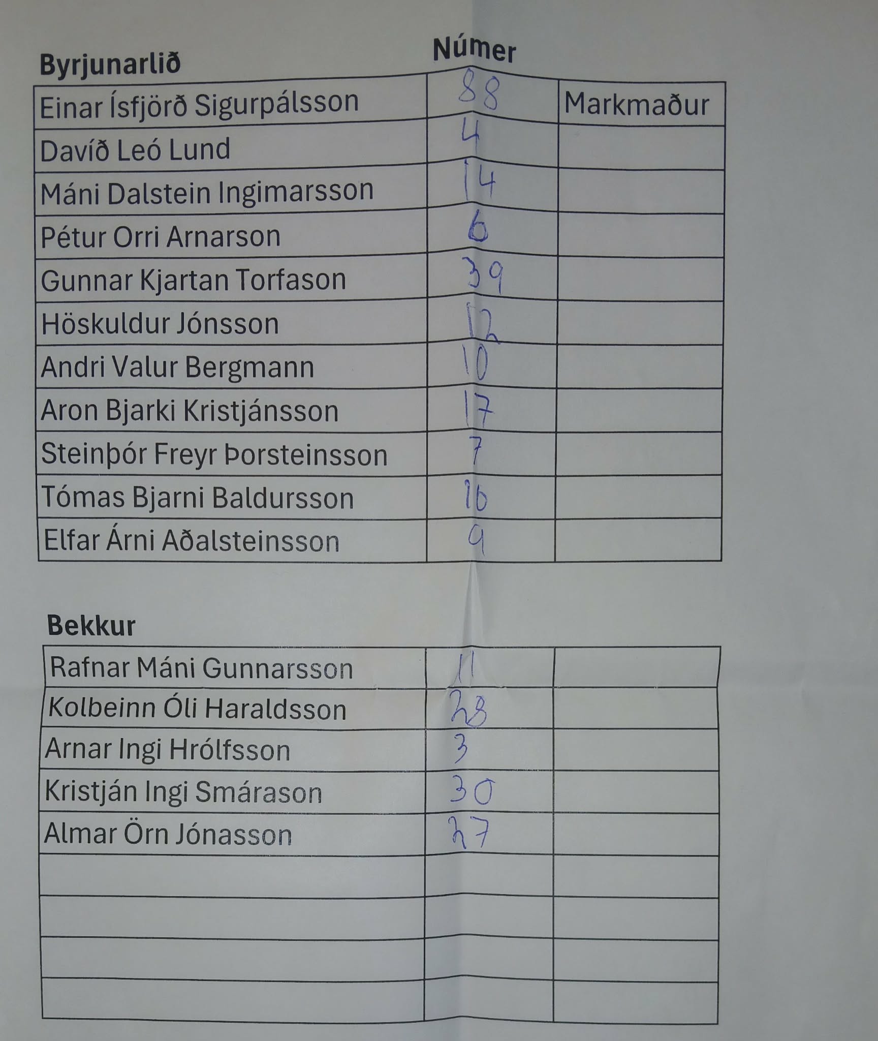 Andri Valur Bergmann Steingrímsson skoraði svo tvö mörk fyrir Völsunga á 49.mínútu og 64.mínútu. Sú ótrúlega staðreynd leit þá dagsins ljós að nú hafa allir sex Bergmannbræðurnir, Guðmundur Óli, Sveinbjörn, Hallgrímur Mar, Ólafur, Hrannar og Andri skorað fyrir meistaraflokk Völsungs í Kjarnafæðimótinu og hlýtur það að vera met sem seint eða aldrei verður slegið.