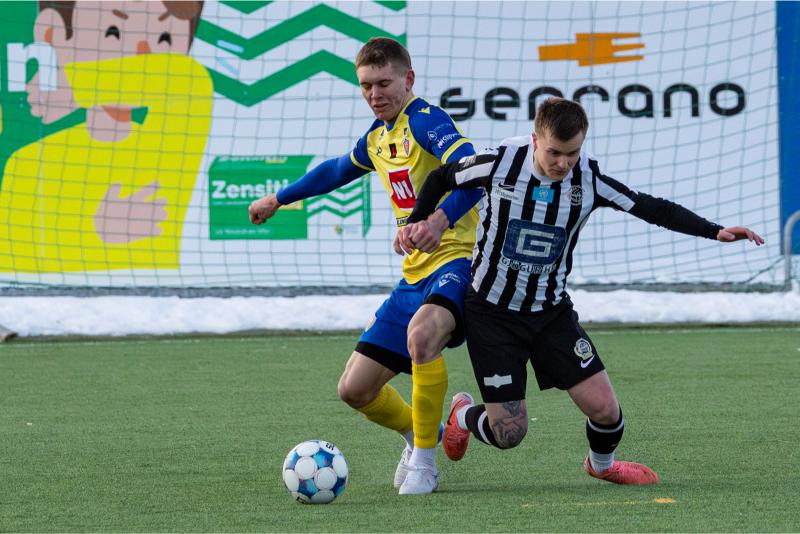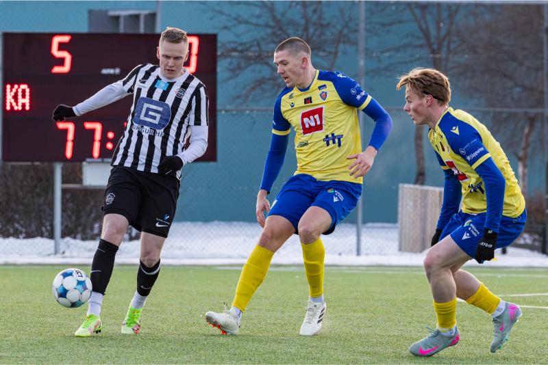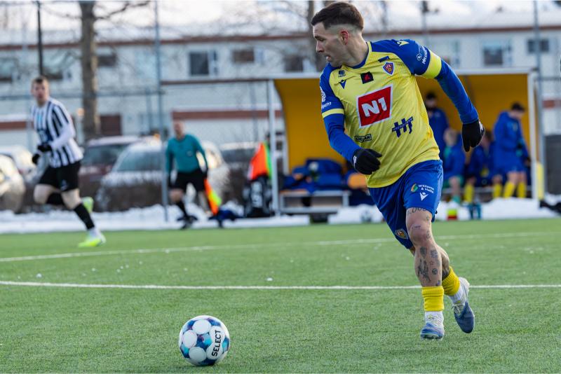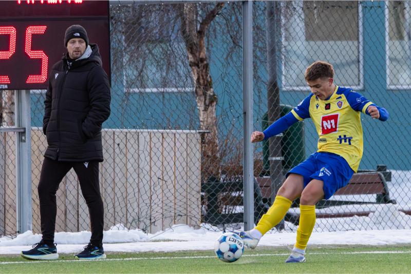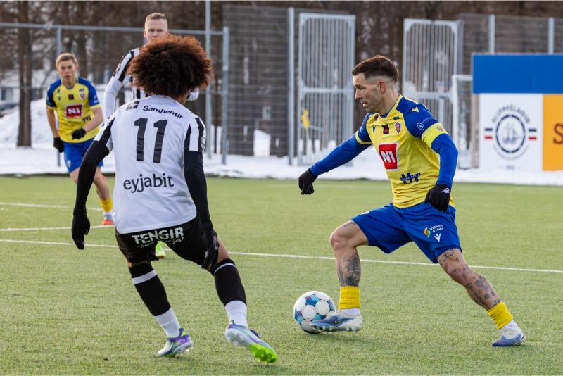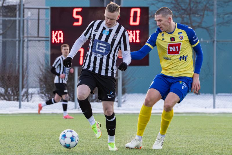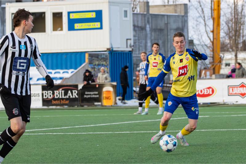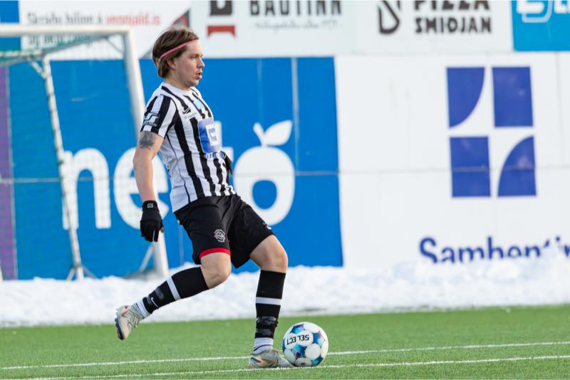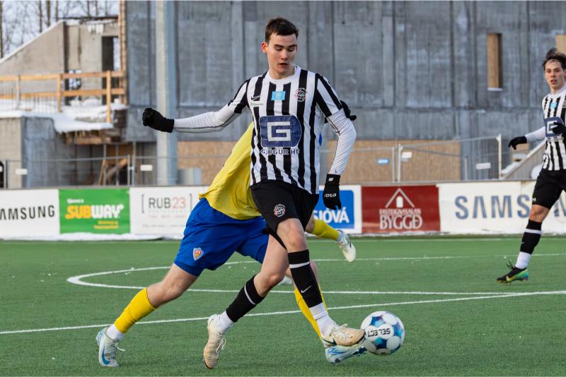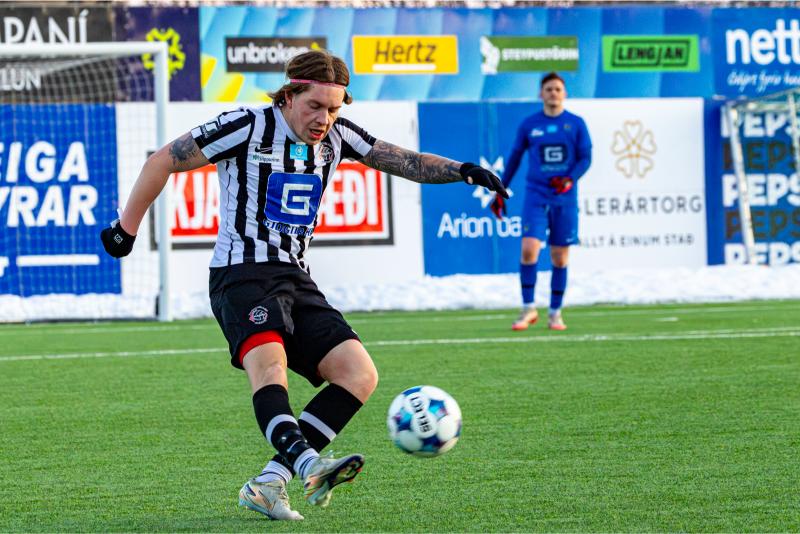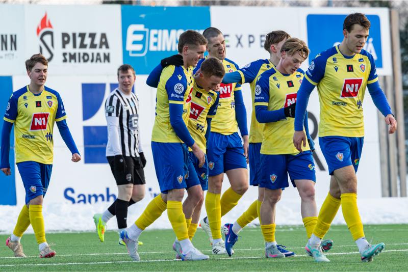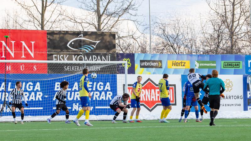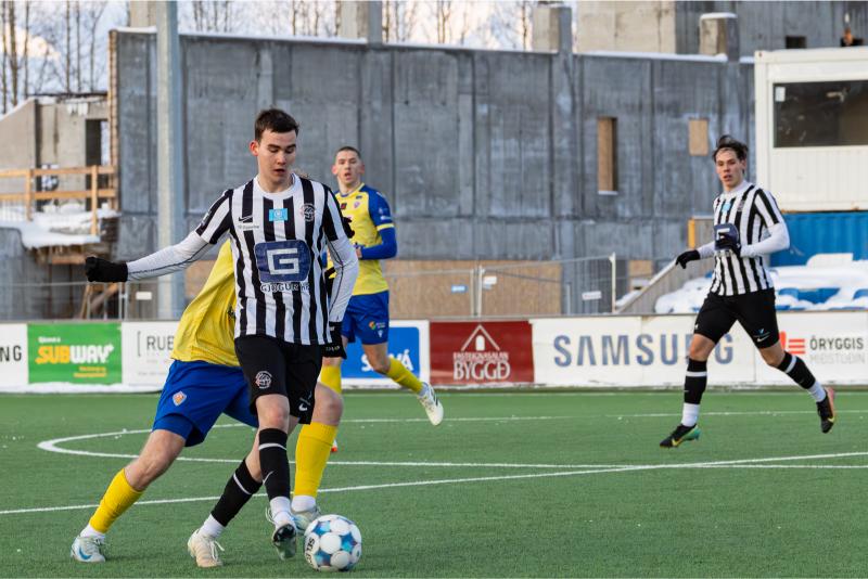 KA tryggði sér sæti í úrslitum A-deildar Kjarnafæðimótsins með öruggum 5–0 sigri á Magna þegar liðin mættust á Greifavellinum í gær. Leikið var í kulda, en undir fyrstu sól ársins sem setti skemmtilegan svip á leikinn.