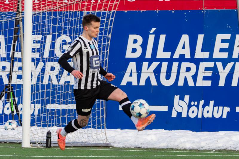 KA-menn náðu undirtökunum snemma og komust yfir á 33. mínútu þegar Hallgrímur Mar Steingrímsson kom boltanum í netið. Aðeins tveimur mínútum síðar tvöfaldaði Birgir Baldvinsson forskotið og staðan 2–0 í hálfleik.